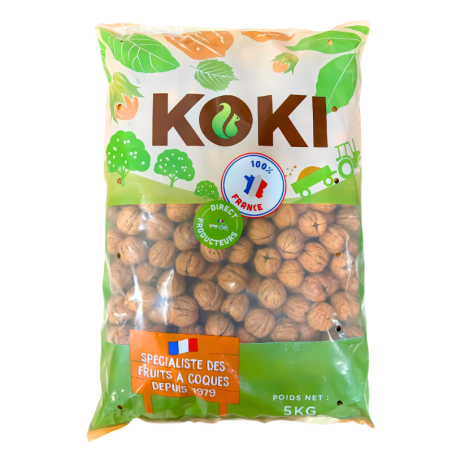 Noix en coque d'origine française commercialisée sous la marque KOKI, gage de sa qualité. Caractérisée par ses gros calibres, la variété de noix Lara est appréciée pour la douceur de son goût. Poids net 5kg.