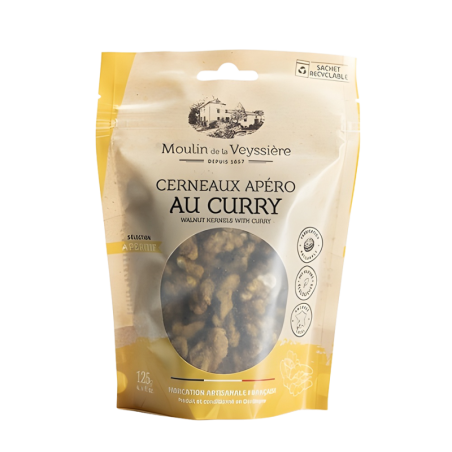 Ingrédients: cerneaux de noix : 92%, curry jaune : 3% (curcuma, citronnelle,