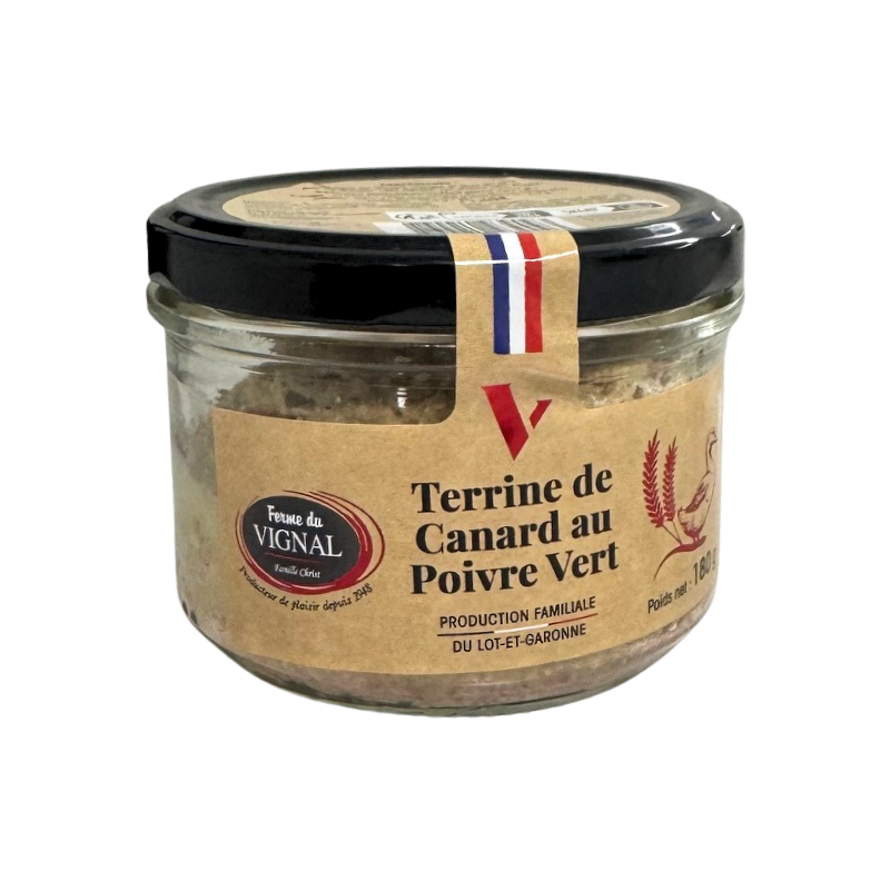 Découvrez notre terrine de canard au poivre vert. C'est toute la richesse d'un terroir qui s'affirme dans cette terrine, elle vous transporte au cœur des saveurs d'antan et du savoir faire artisanal.