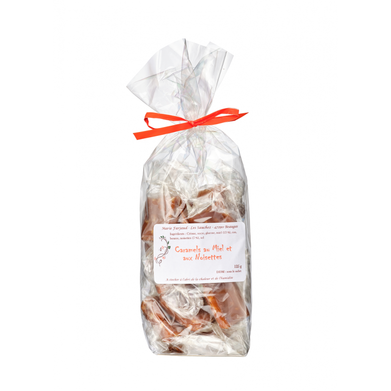 Délicieux caramels mous au miel et aux noisettes de France.